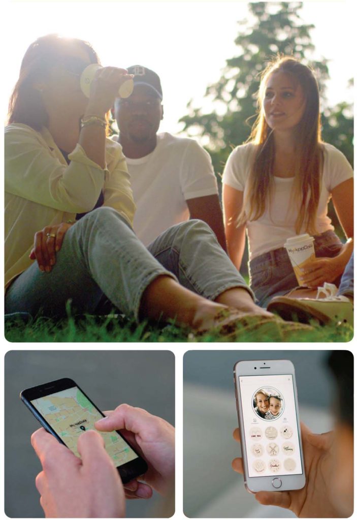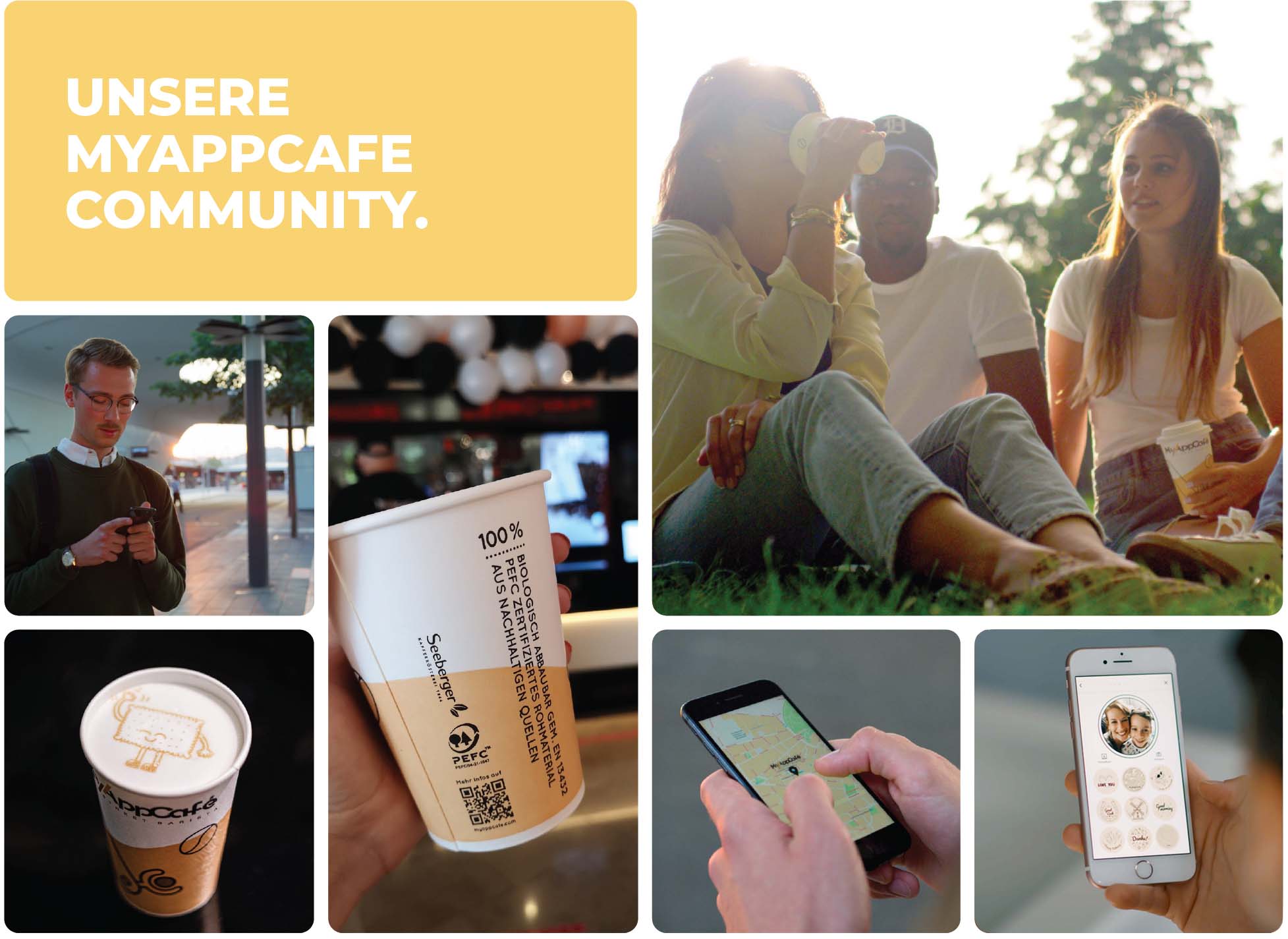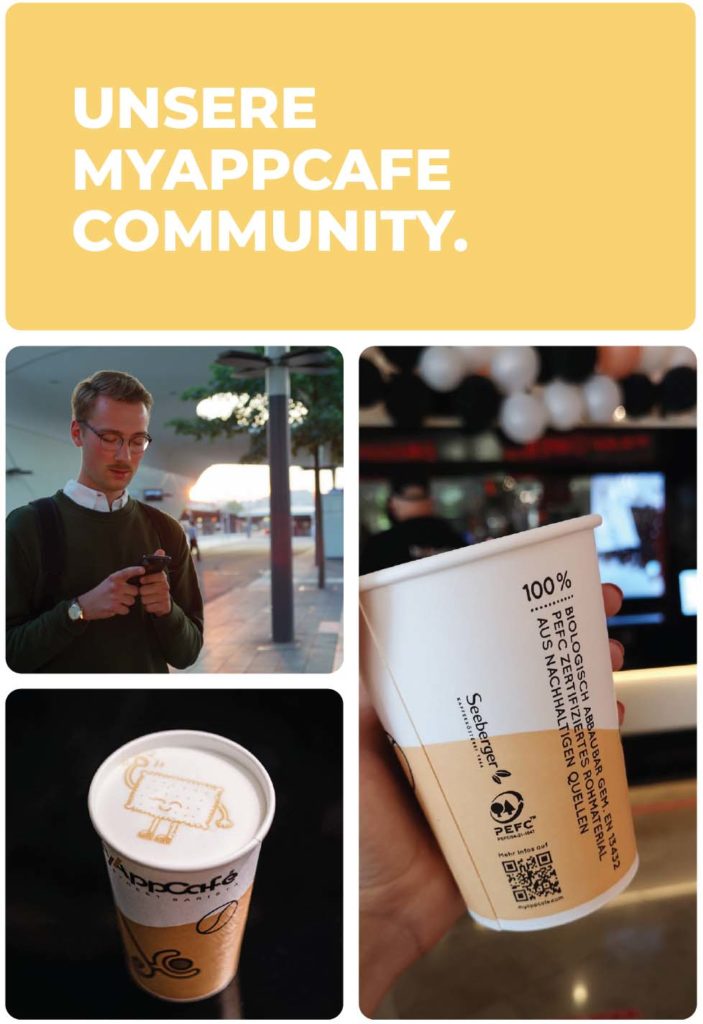 MyAppCafé verwendet ausschließlich biologisch abbaubare Becher, Deckel, Holzrührstäbchen und Papierstrohhalme.